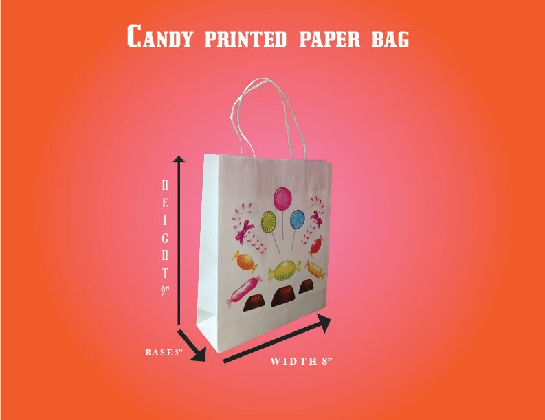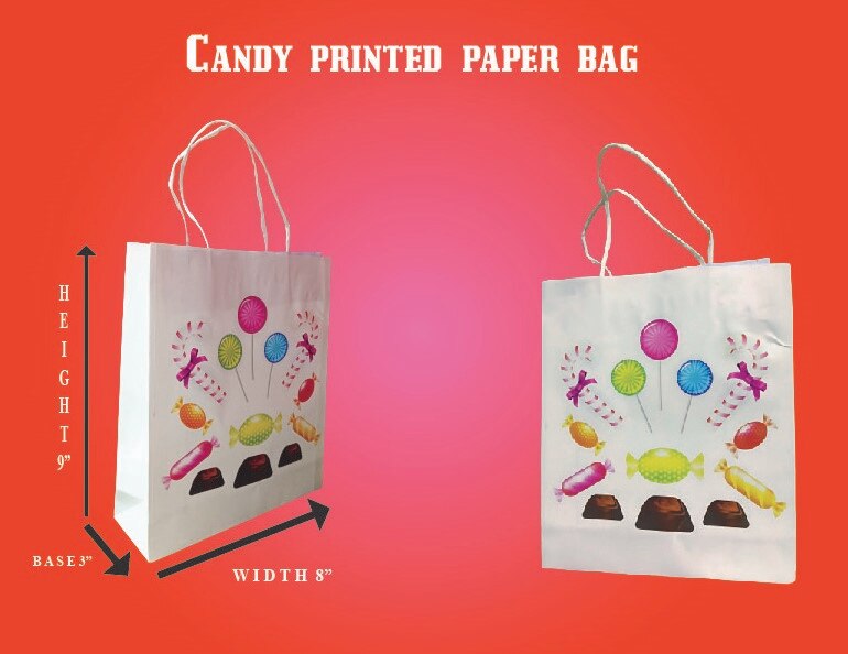 Size 9/8/3" Height - 9 inch width - 8 inch base - 3 inch Foil-printed cute paper bag, Paper Quality - 140gsm bond paper handle - paper handle can be used for special occasions and Puja purposes return gift
