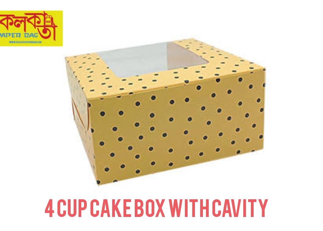 cup cake box with window and cavity for 4 cup cake pack of 25pcs